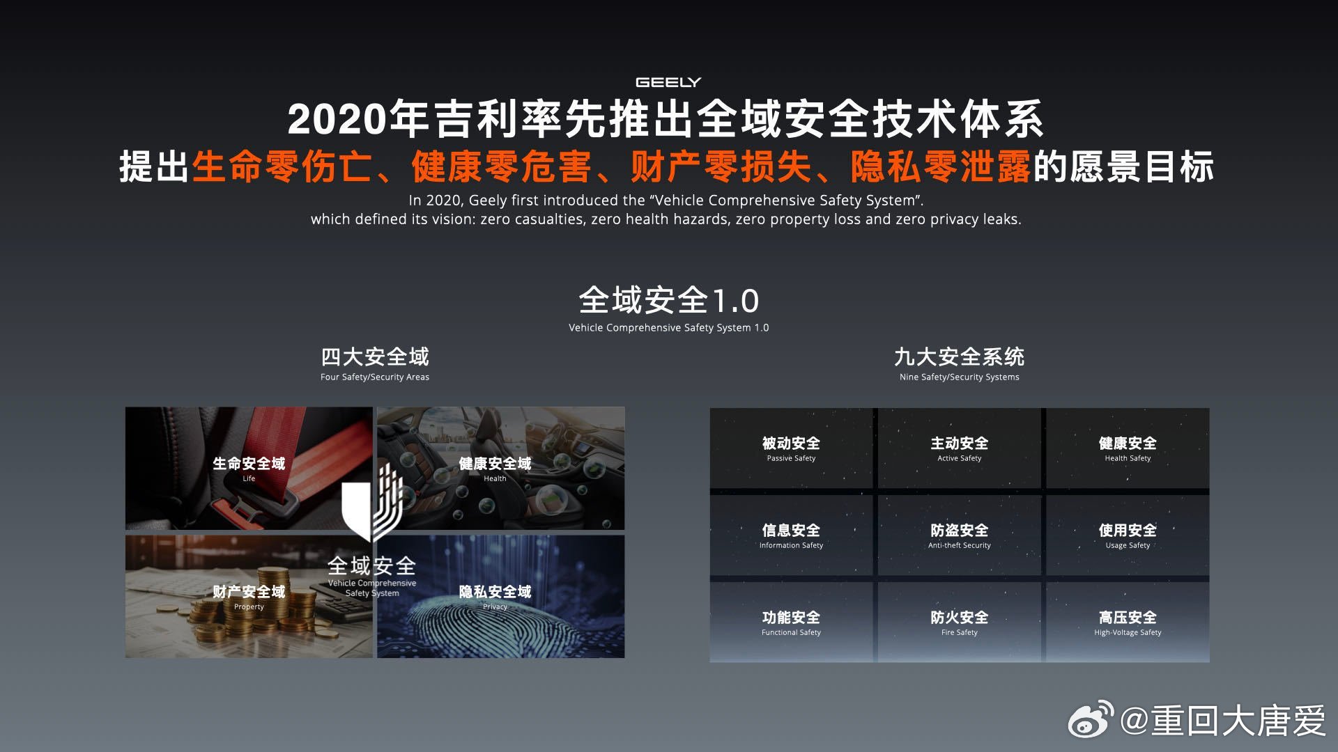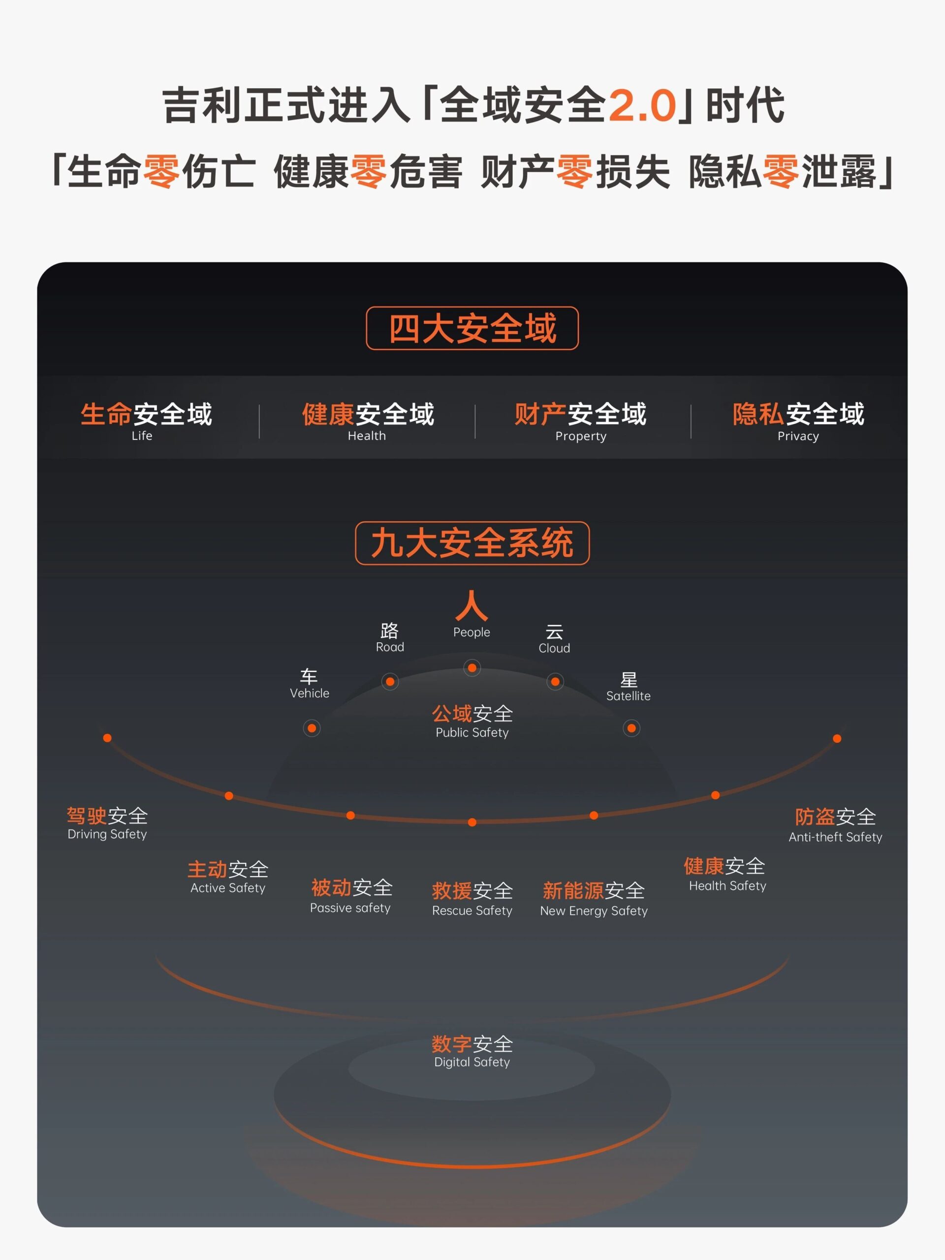 Odată cu inaugurarea centrului, Geely a lansat și sistemul tehnologic „All-Domain Safety 2.0”, evoluția avansată a conceptului anterior, complet integrat cu strategia „All-Domain AI”. Noul sistem trece de la perspectiva centrată pe vehicul la una ecologică „om-vehicul-drum-cloud-satelit”, acoperind toate scenariile de deplasare și întreg ecosistemul.