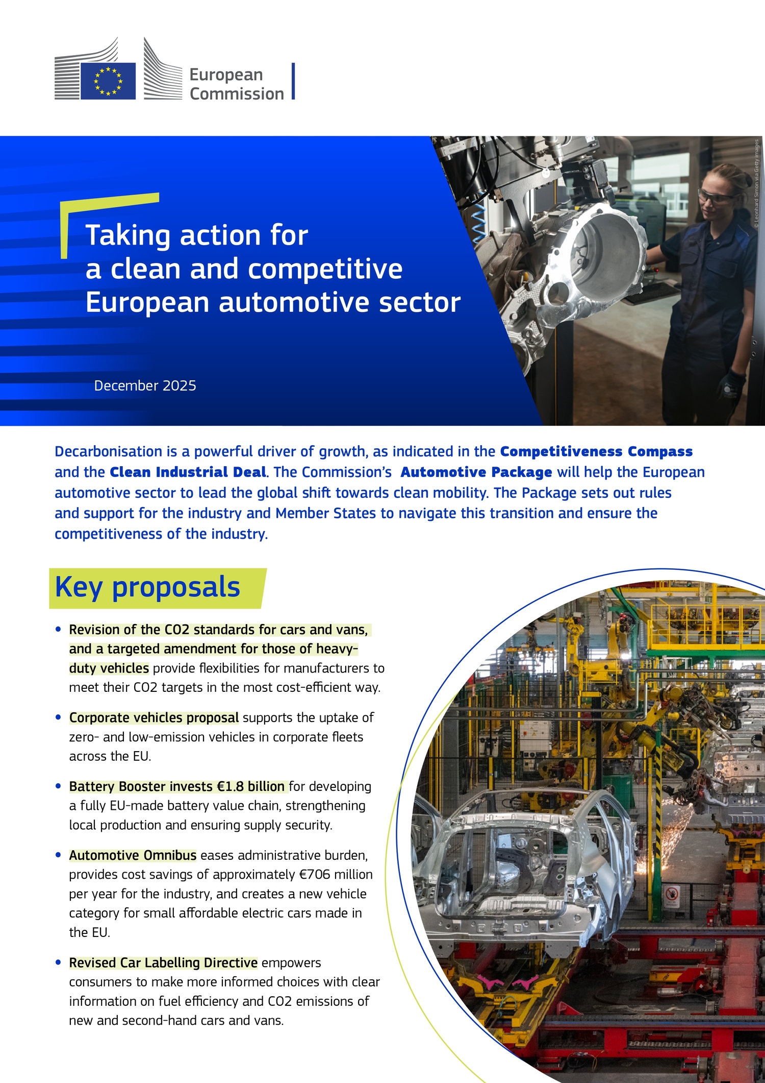 Pachetul auto răspunde apelurilor industriei pentru simplificarea regulilor, menținând un semnal puternic către vehiculele cu emisii zero (ZEV), oferind mai multă flexibilitate producătorilor și sprijinind vehiculele și bateriile produse în Uniunea Europeană.