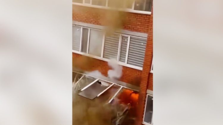 Un apartament din Ural, Kazahstan, a fost distrus în urma unei explozii puternice, în timp ce pompierii interveneau pentru a stinge incendiul.