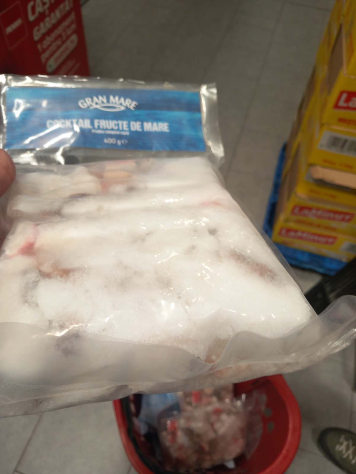 Produse congelate aveau aglomerări mari de gheață la nivelul ambalajului. Acest lucru semnalează nerespectarea temperaturilor de depozitare recomandate de producători.