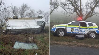 (foto) Echipajul de poliție, lovit de un microbuz la Ceadîr-Lunga, avea girofarul pornit și se afla în misiune: Cum s-a produs accidentul grav