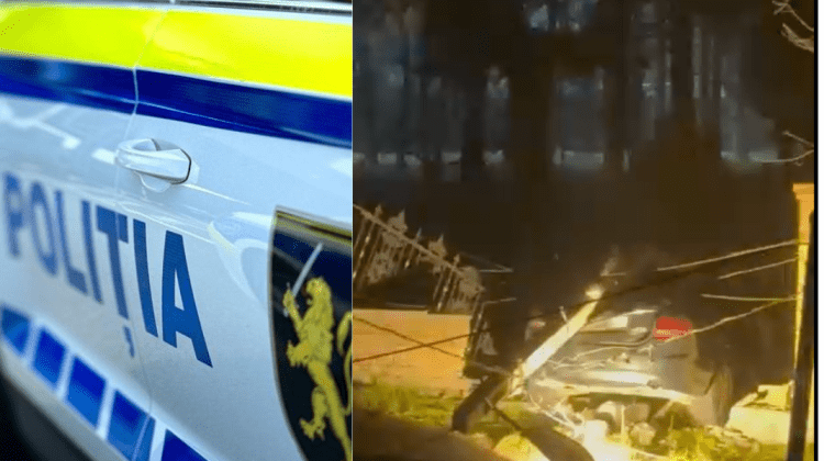 Inițial, vehiculul a tamponat pilonul, precizează polițiștii. Apoi a fost deteriorată și porțiunea de gard.