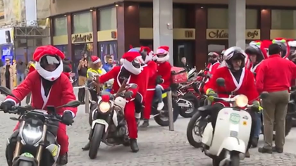 (video) Paradă spectaculoasă în Madrid: Peste 500 de motociclişti s-au transformat în Moş Crăciun