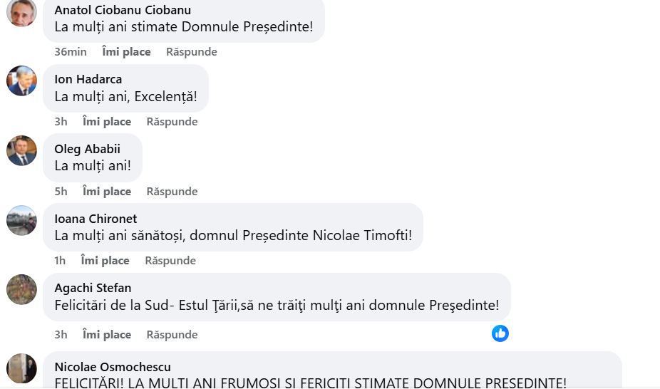 „La mulți ani, domnule președinte Nicolae Timofti”, a scris Ion Păduraru, care pe 14 ianuarie 2016 a fost propus de Nicolae Timofti pentru funcția de prim-ministru.
