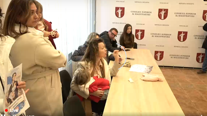 (live) „Nu mințiți și nu manipulați.” Marina Rusu și Victoria Sanduța, protest cu copiii în brațe la sediul CSM: Nu e din gașcă și nu execută comenzi politice