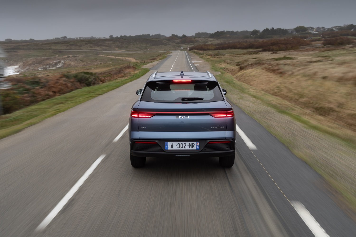 - Spate minimalist cu bară luminoasă pe toată lățimea, stopuri LED unghiulare și spoiler integrat subtil.