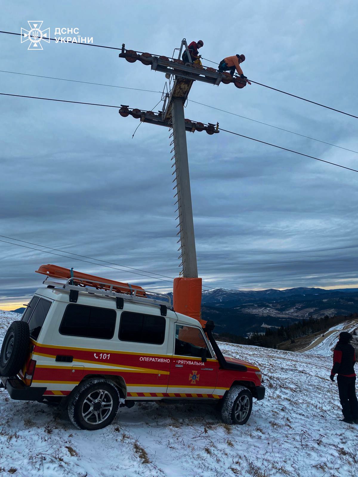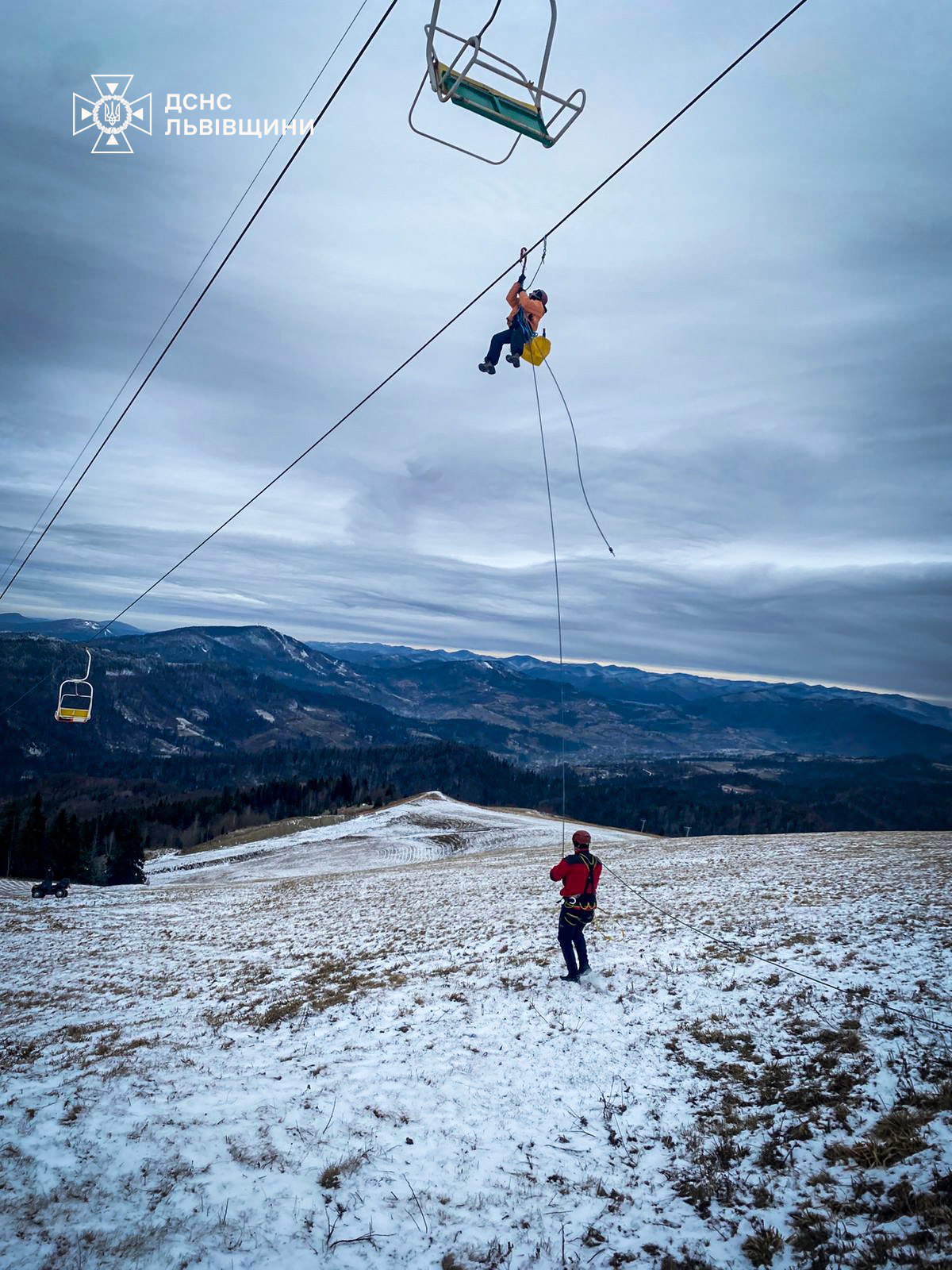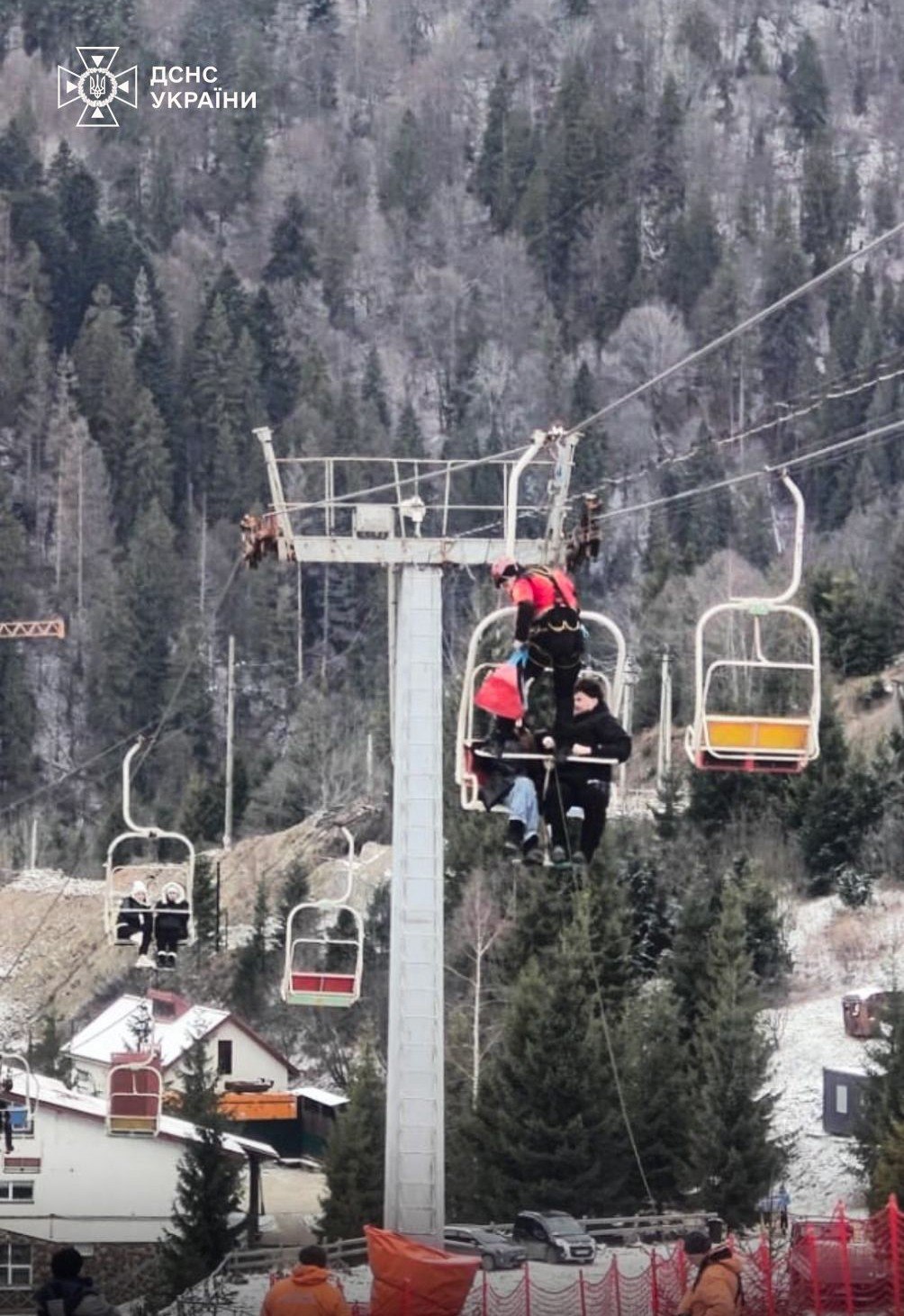 „Pe muntele Zahăr Berkut s-a oprit telescaunul, iar pe acesta se află aproximativ 80 de persoane”, a declarat DSNS într-un comunicat oficial.