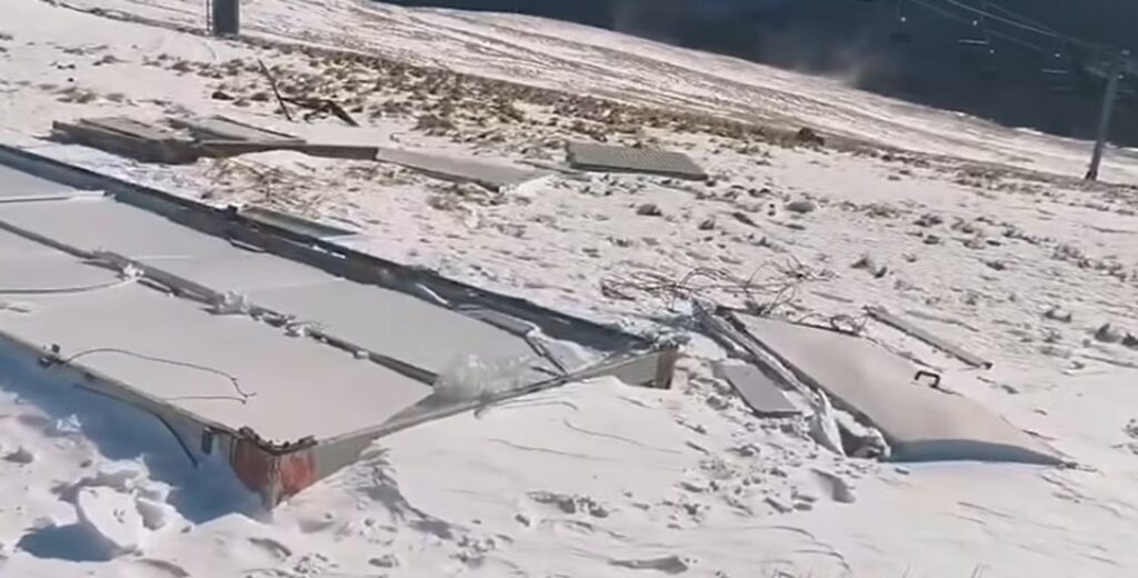 Cabinetul medical al Serviciului Public Salvamont Gorj de pe Vârful Păpușa a fost spulberat de viscol. Containerul metalic era ancorat cu cabluri bine fixate în beton, dar natura dezlănțuită s-a dovedit mai puternică. Salvamontiștii analizează posibilitățile de compensare a pierderii.