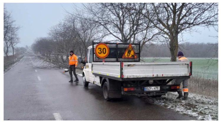 În timpul nopții, 157 de utilaje speciale și 158 de muncitori rutieri au intervenit, răspândind peste 2.000 de tone de sare tehnică și 136 de tone de materiale antiderapante pentru combaterea ghețușului. Din cauza vântului puternic, 16 copaci au fost doborâți pe carosabil, fiind evacuați prompt, fără a înregistra blocaje majore.