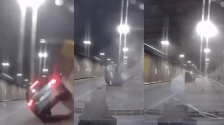O depășire periculoasă printr-un tunel din București s-a finalizat cu un accident violent. VIDEO cu momentul impactului