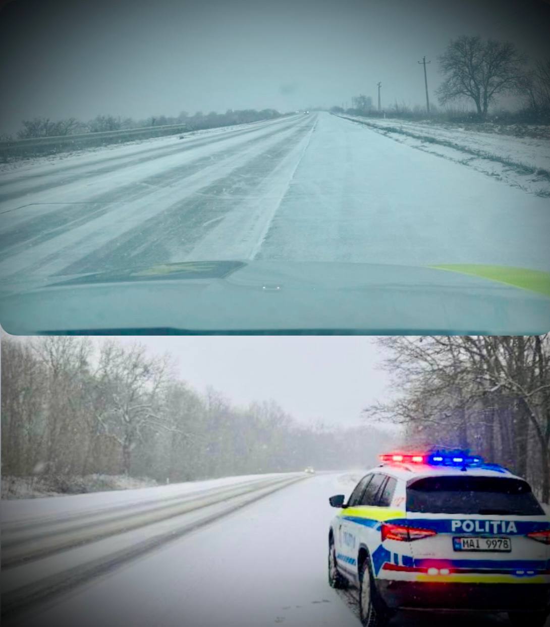 Poliția Națională informează șoferii că, pe traseele naționale M1 (Leușeni-Dubăsari) și M5 (Criva-Briceni-Tiraspol), fără mențiunea exactă a tronsoanelor afectate, se înregistrează precipitații sub formă de ninsoare. Pe carosabil s-a format ghețuș, fapt ce creează condiții dificile de circulație.