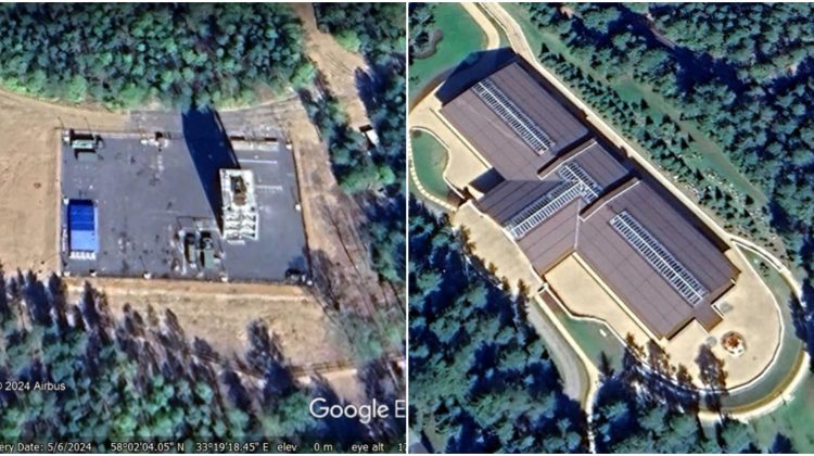 Imaginile din satelit arată dimensiunea și nivelul ridicat de confort al reședinței, cu clădiri și facilități extinse.