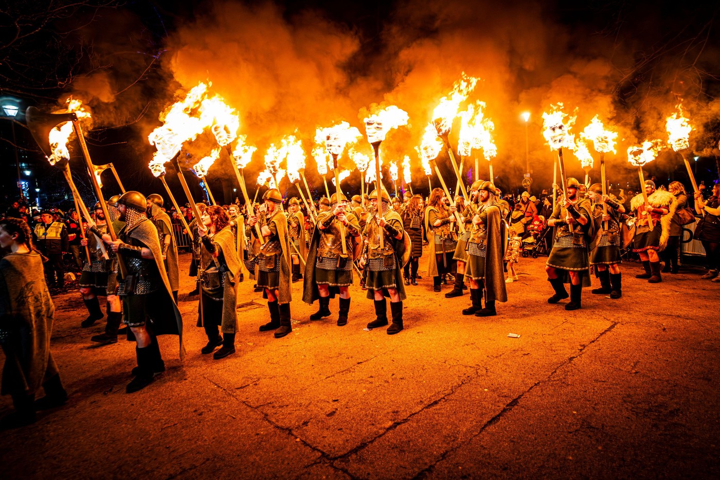 „Vikingii” au năvălit pe străzi. Mii de oameni, purtând torțe, au mărșăluit în Edinburgh pentru Festivalul Focului
