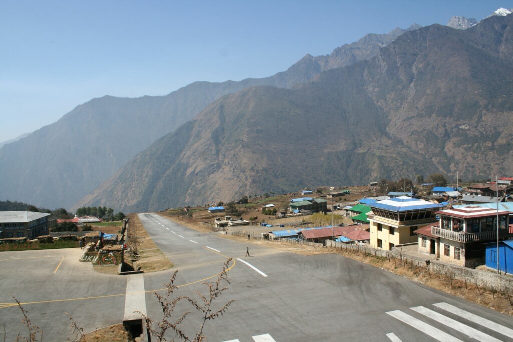 Situat în Lukla, la baza traseului de drumeție spre Muntele Everest, aeroportul se află la doar 40 de minute de Kathmandu. Rutele alternative, cum ar fi cu autobuzul sau pe jos, durează considerabil mai mult.
