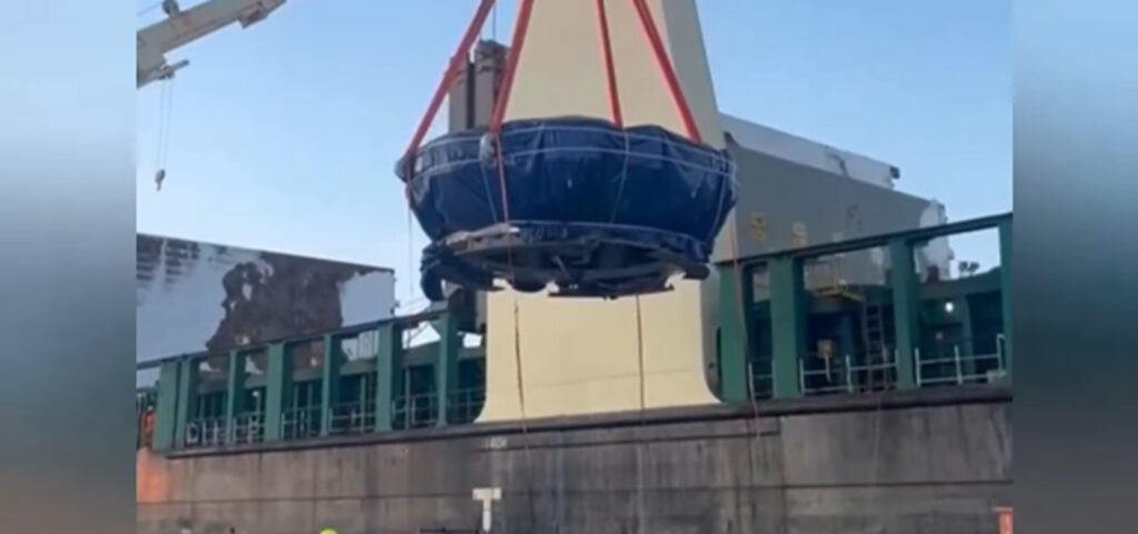 97 de camioane (majoritatea agabaritice) îl vor transporta pe bucăți spre șantier.