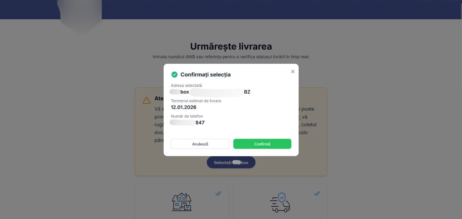 Dacă așteptați un colet, contactați direct firma de curierat prin datele oficiale.