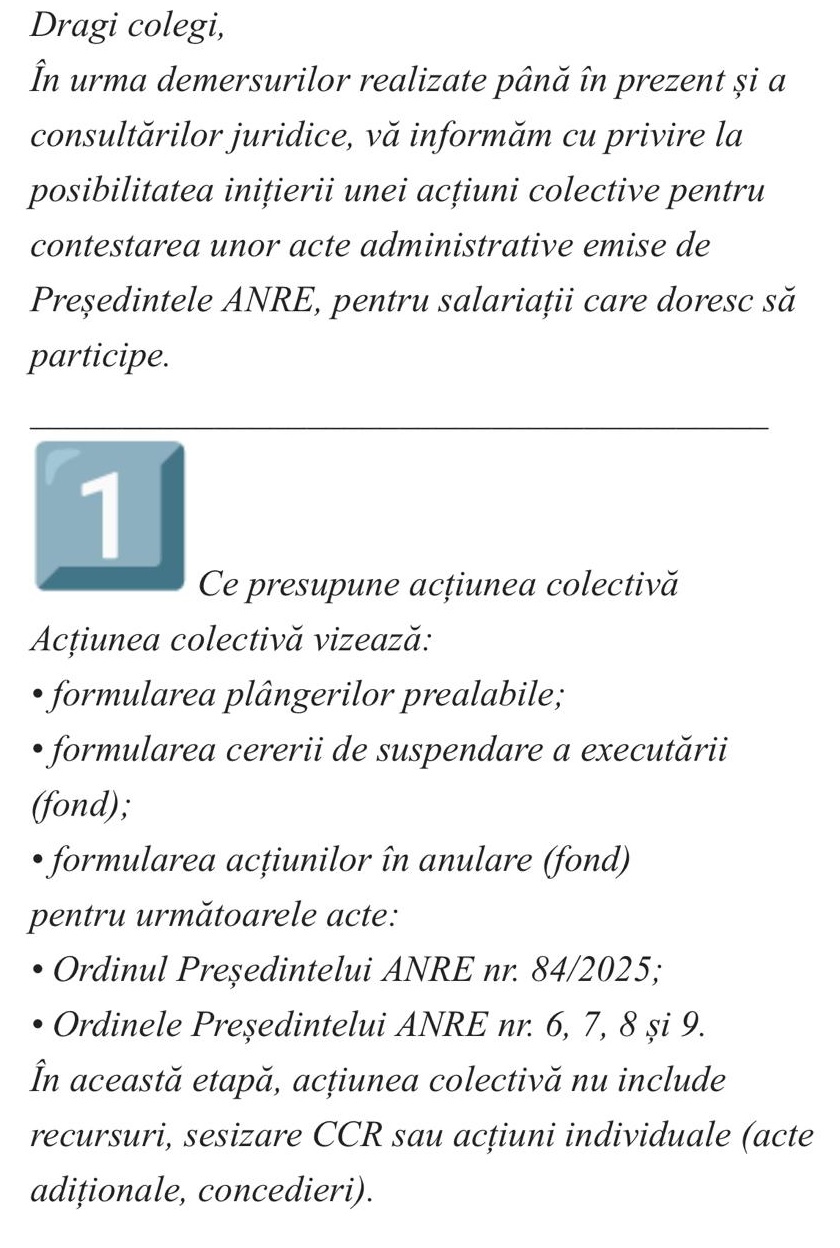 Sunt 102 de angajați ai ANRE care au depus, joia trecută, o acțiune în instanță pentru suspendare executării ordinelor prin care sau redus salariile din instituție, începând cu 1 ianuarie, ca urmare a reorganizării impuse prin Legea nr. 145/2025. Aceasta vizează atât ANRE, cât și Autoritatea de Supraveghere Financiară (ASF) şi Autoritatea Naţională pentru Administrare şi Reglementare în Comunicații (ANCOM).