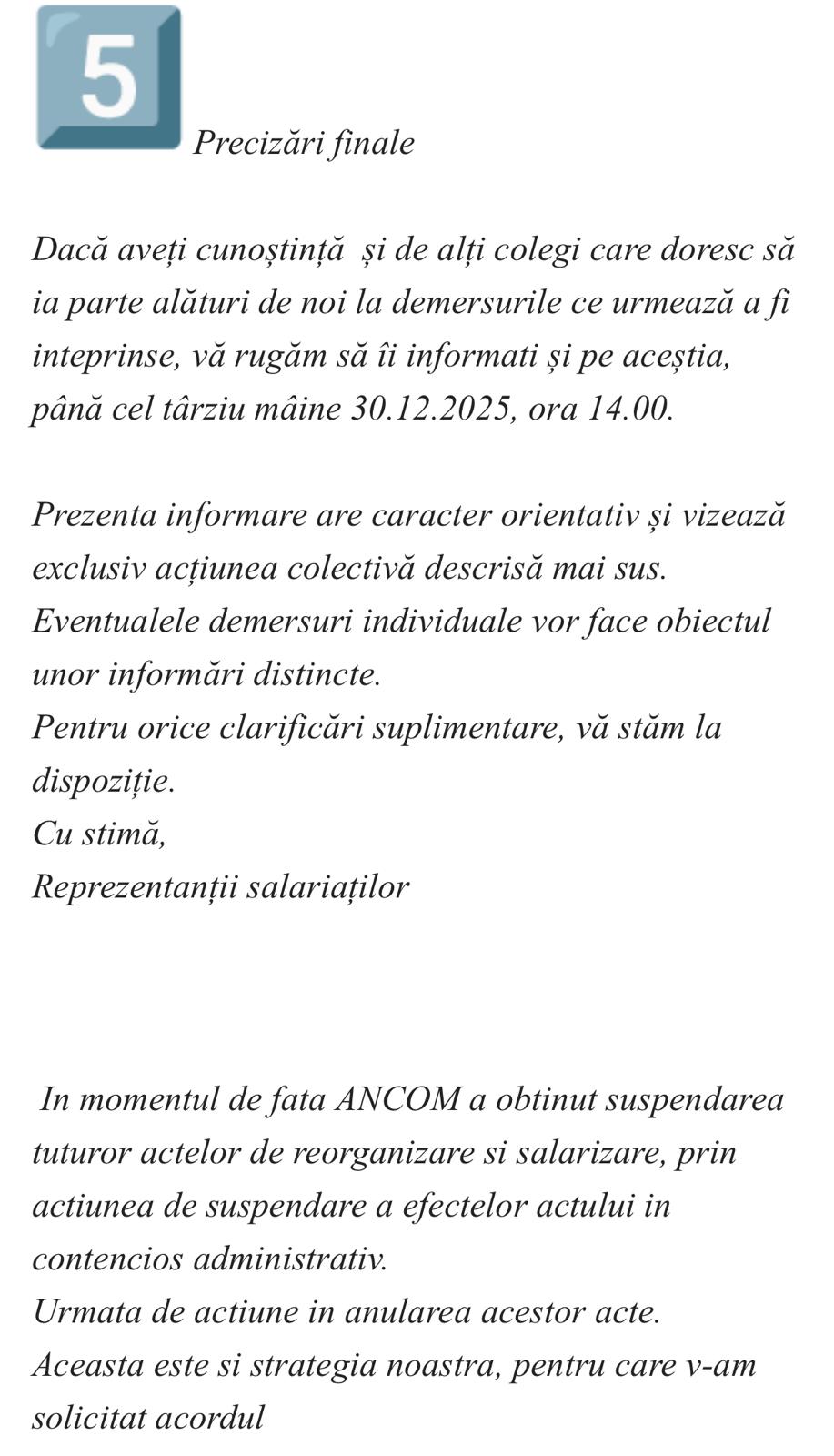 Estimarea are la bază un mesaj intern trimis salariaților de către reprezentanții lor în vederea acțiunii din instanță, obținut de Mediafax.