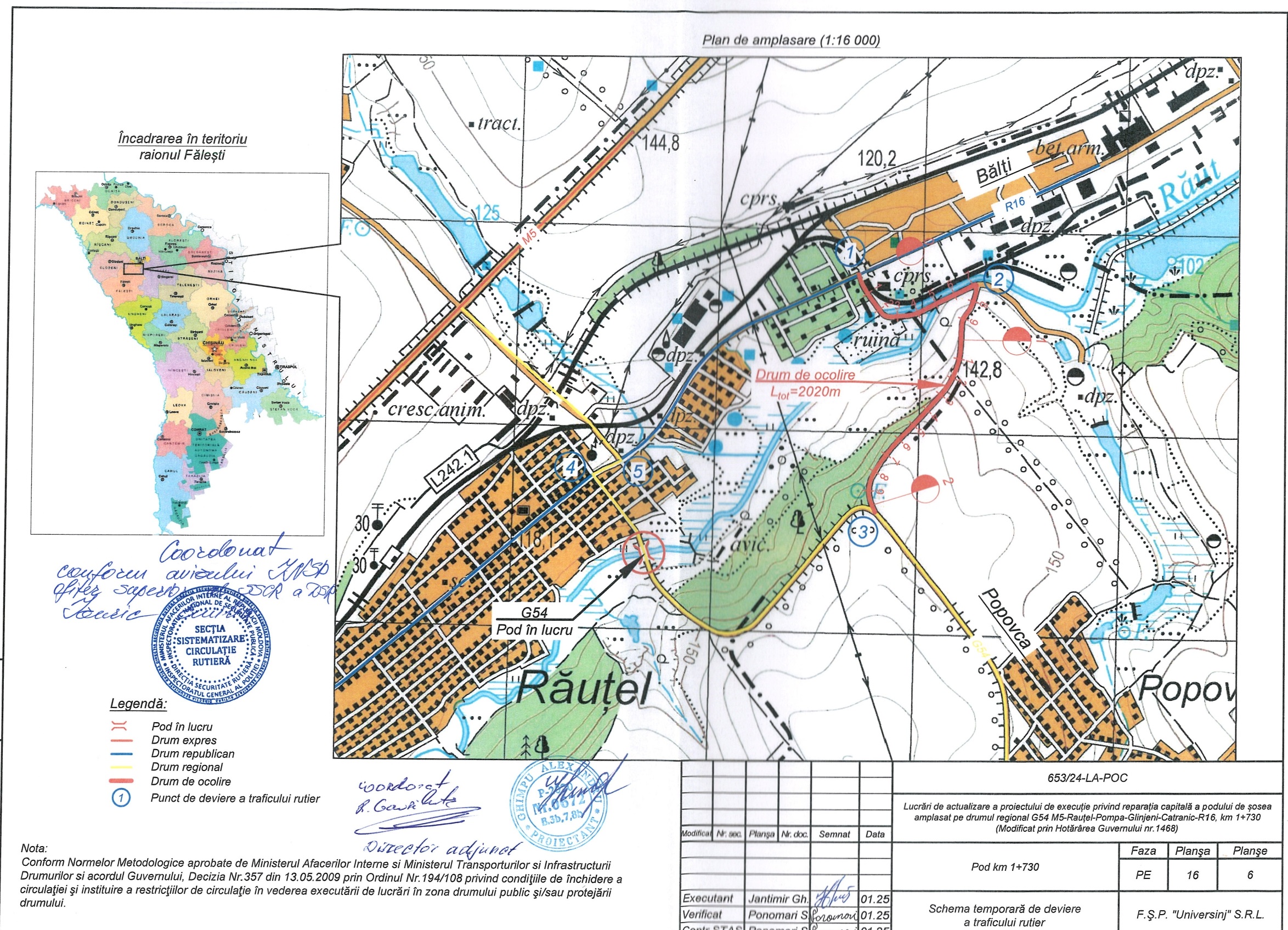 Traficul pe podul peste râul Răuțel, raionul Fălești, situat pe drumul public național G54 R16-Răuțel-Pompa-Glinjeni-Catranîc-R16, km 1,730, este redirecționat, ca urmare a demarării lucrărilor de reparație capitală a podului.