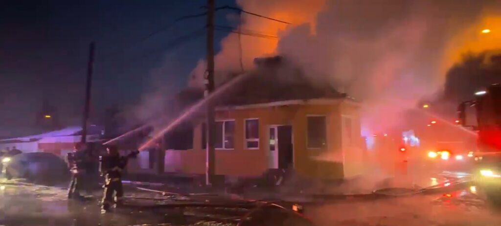 Acesta s-a manifestat cu flacără deschisă și degajări de fum, existând pericolul de propagare la construcțiile învecinate.