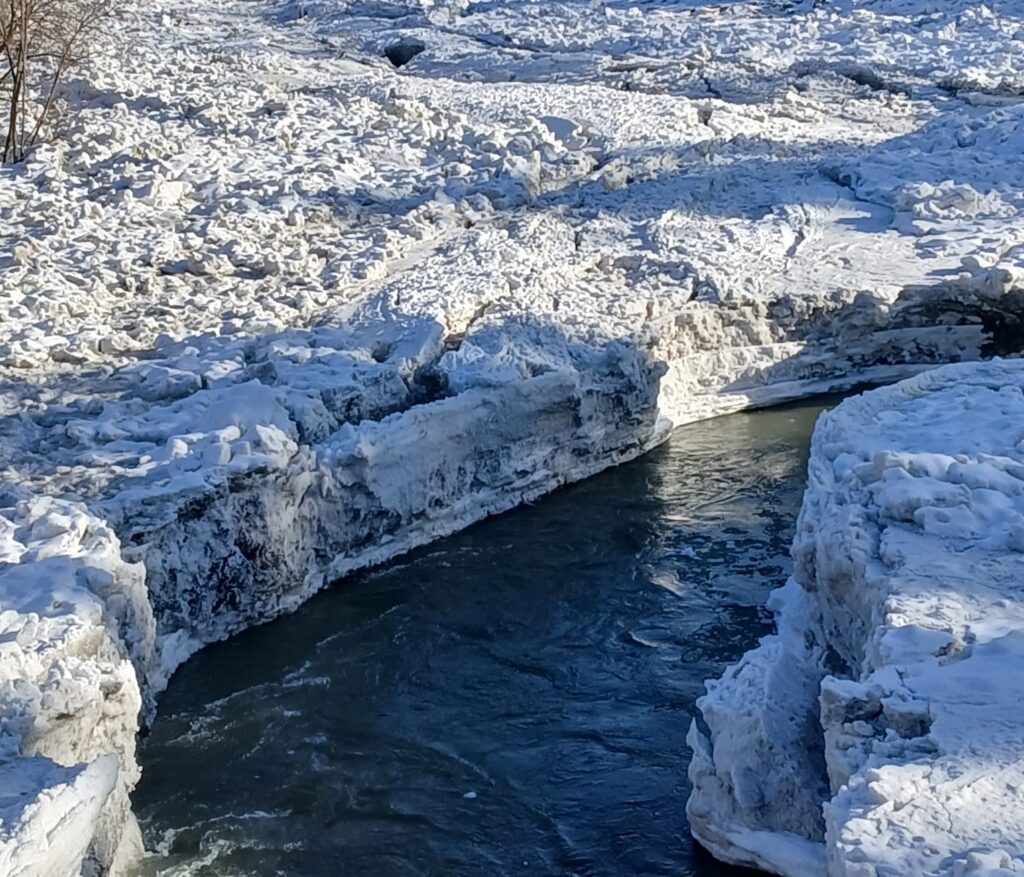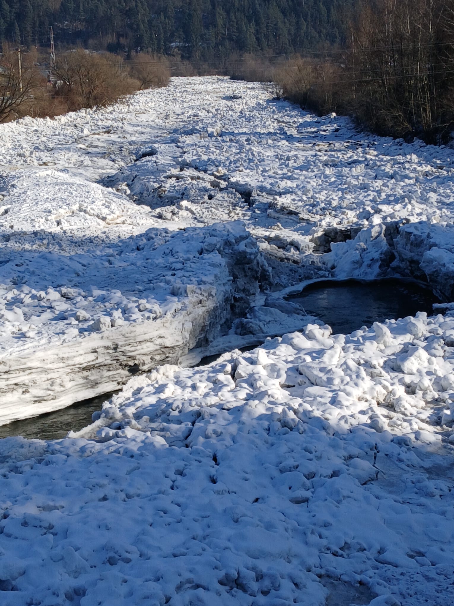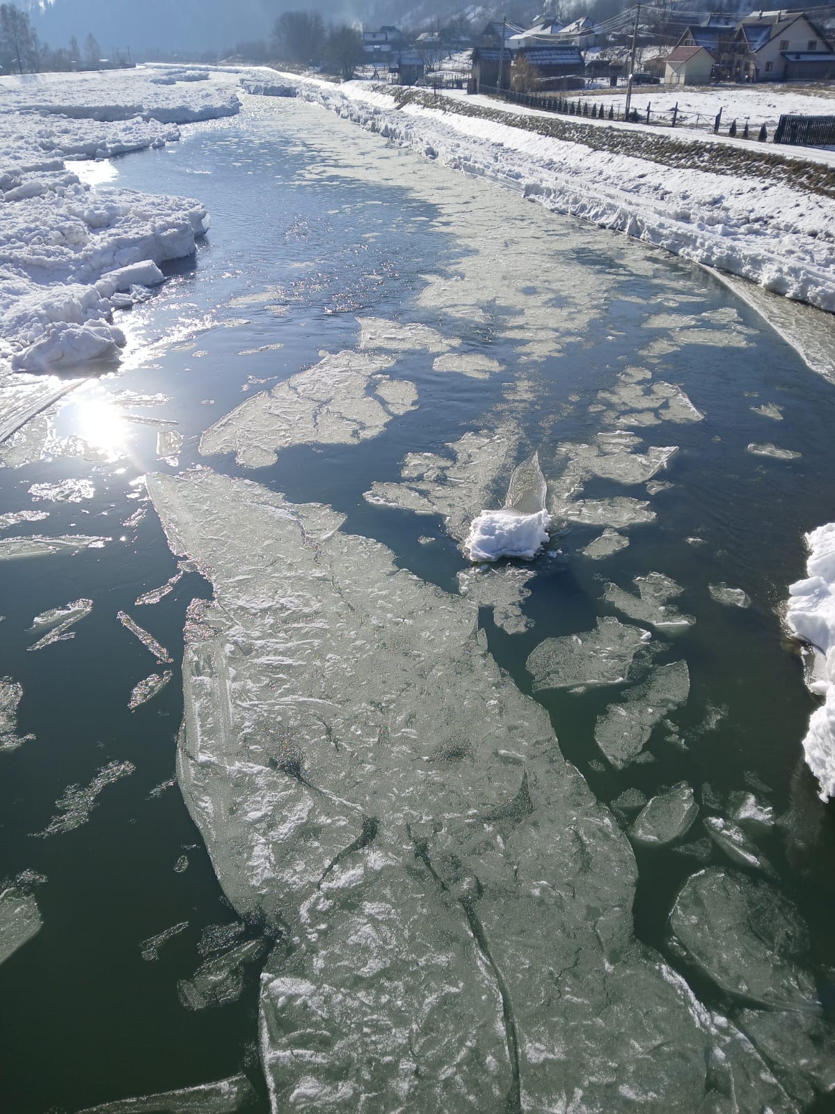Aglomerări de ghețuri și zăpor pe râul Bistrița. Fenomenul se manifestă pe 8,9 kilometri