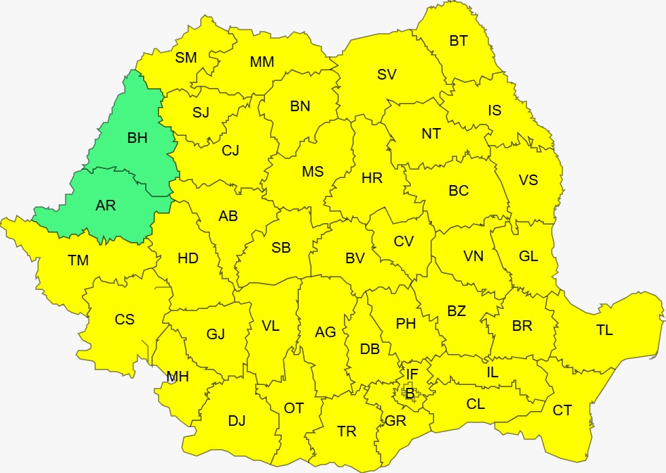 ANM a emis și mai multe atenționări cod galben pentru diferite intervale.