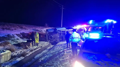 (foto) Un microbuz cu 11 moldoveni, care se îndrepta spre Germania, s-a răsturnat în România, ieri noapte: Mai multe ambulanțe, la fața locului