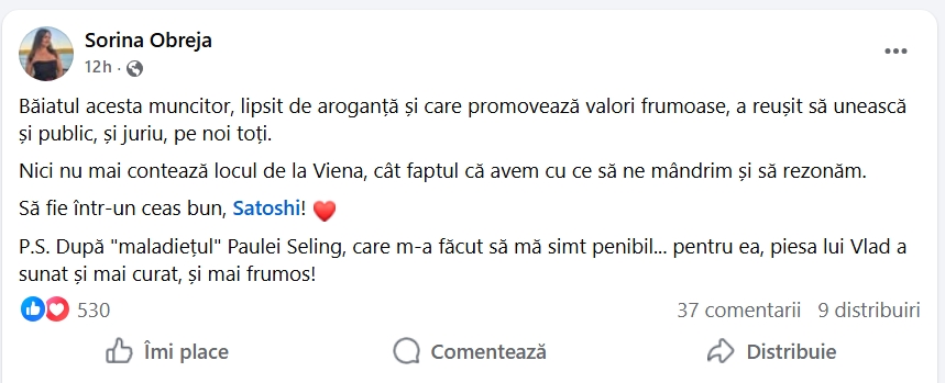 Artista Paula Seling, membră a juriului internațional, a transmis un mesaj la finala națională Eurovision Moldova 2026 și a felicitat publicul spunând „Maladeț, Moldova!”, echivalentul rusesc al expresiei „Bravo, Moldova!”, ceea ce a generat un val de critici în mediul online.