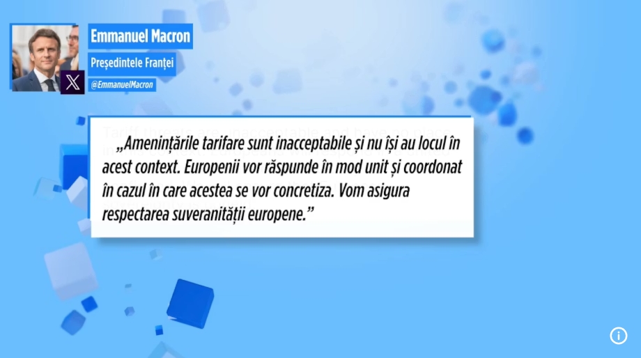 „Europenii vor răspunde unit și coordonat dacă acestea se vor concretiza. Vom asigura respectarea suveranității europene”, a scris liderul de la Paris pe rețelele de socializare.