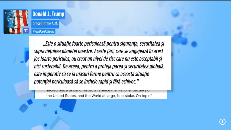 „Aceste țări joacă foarte periculos”, pun în pericol securitatea globală și sunt necesare „măsuri puternice”, a avertizat Trump.