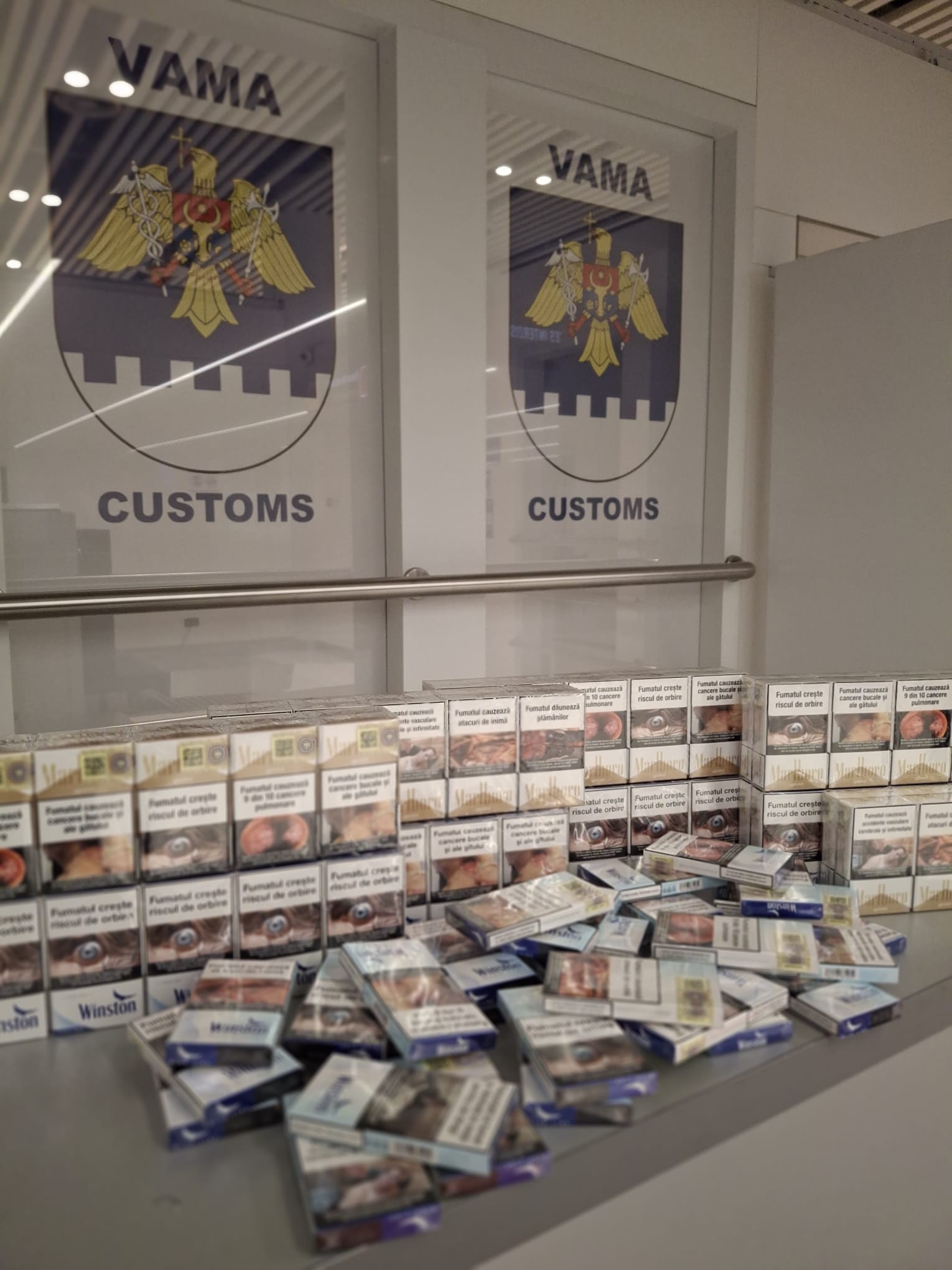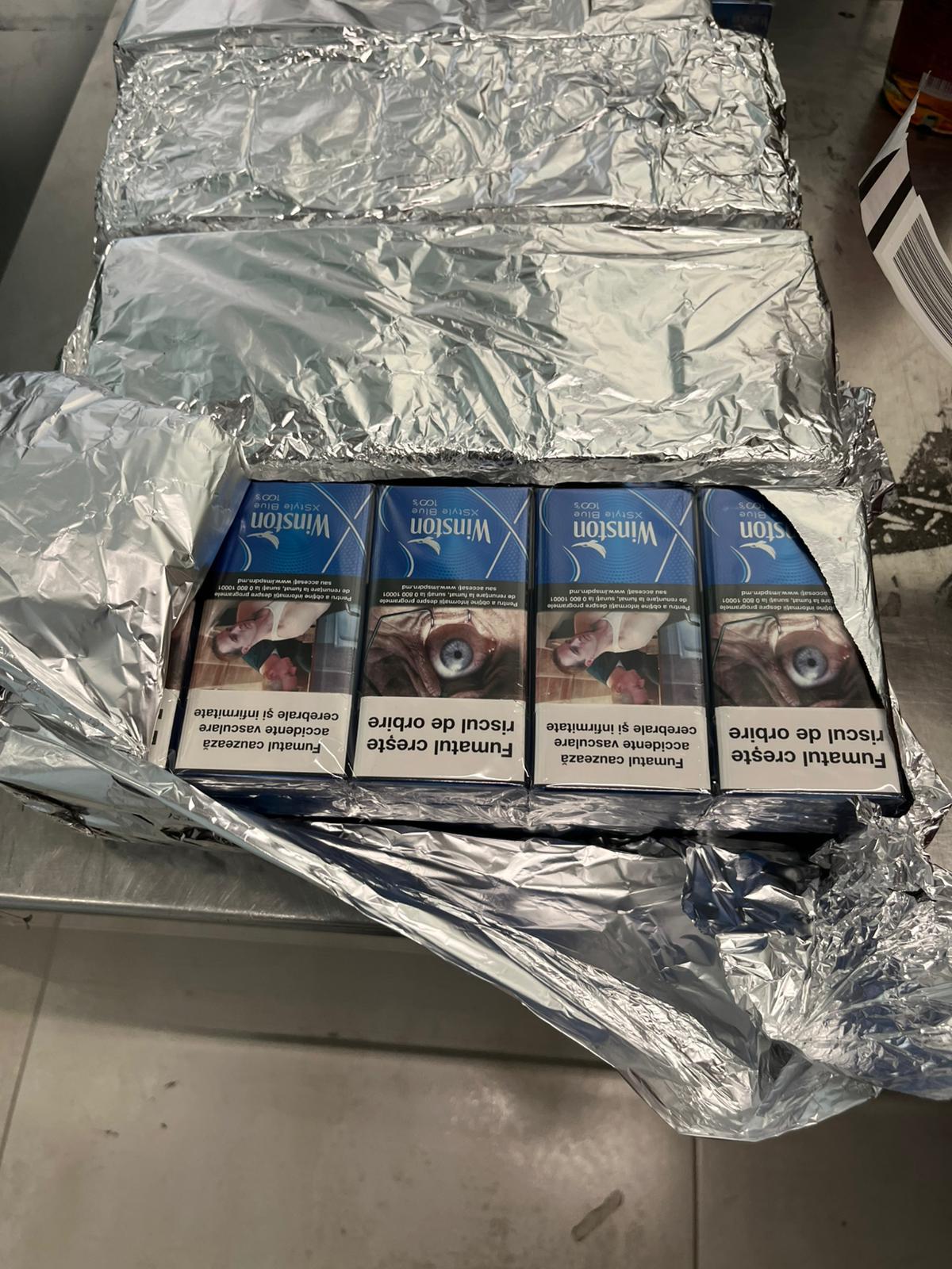 Persoanele care se deplasau spre capitala Angliei cu țigări în valize au 46 și 37 de ani. Unul avea 100 de pachete în geantă, iar altul – 120. Produsele de tutungerie nu au fost declarate.