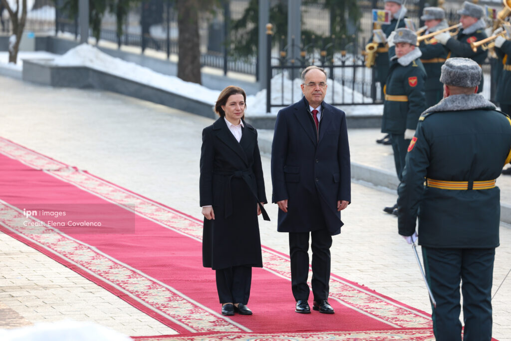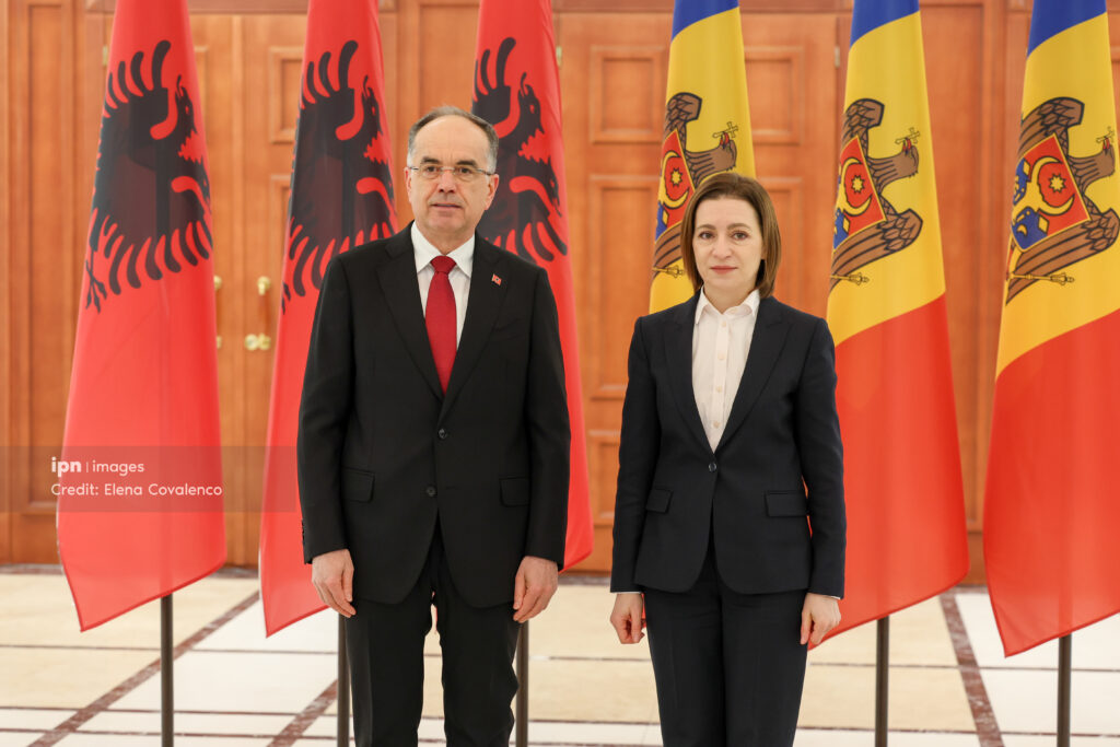 Președintele Albaniei, Bajram Begaj, a fost întâmpinat luni la Președinție, de șefa statului Maia Sandu. După ce Garda de Onoare a intonat imnurile de stat ale Albaniei și Republicii Moldova, cei doi președinți au salutat militarii și au mers în clădirea prezidențială pentru discuții, transmite IPN.