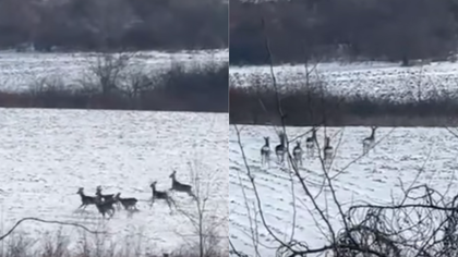 (video) Spectacolul naturii la Strășeni. Mai multe căprioare, surprinse cum aleargă pe un câmp înzăpezit: „Splendide, frumusețe rară”