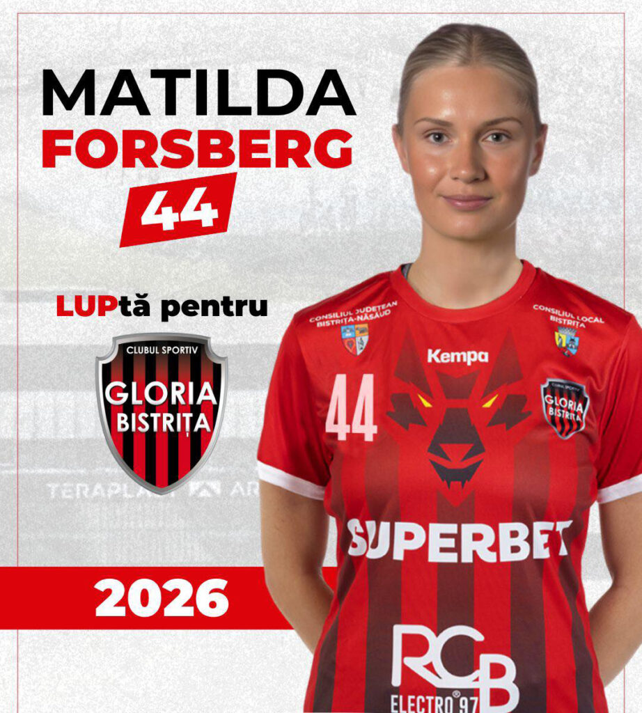 Matilda Forsberg evoluează pe postul de extremă dreapta. Gloria Bistriția încearcă, astfel, să acopere postul respectiv, deficitar după accidentarea japonezei Asuka Fujita.