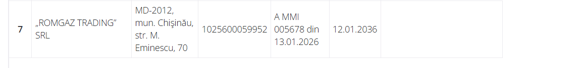 Romgaz Trading SRL, subsidiara din Republica Moldova a companiei românești de stat Romgaz, cel mai mare producător și operator de înmagazinare de gaze naturale de peste Prut, a primit licență de trader de gaze naturale din partea Agenției Naționale pentru Reglementare în Energetică (ANRE) de la Chișinău. Licența a fost acordată săptămâna trecută și este valabilă pentru o perioadă de 10 ani, până la 12 ianuarie 2036, scrie bani.md.
