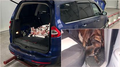 Câinele de serviciu a dat alarma: Sute de pachete de țigări, descoperite camuflate în mașini la Sculeni