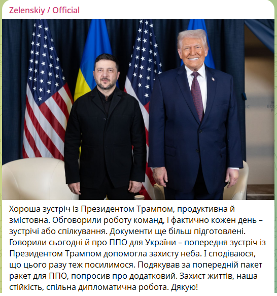 „O întâlnire bună cu Președintele Trump, productivă și consistentă. Am discutat despre activitatea echipelor și, practic, în fiecare zi au loc întâlniri sau comunicări. Documentele sunt acum mai bine pregătite”, a declarat Volodimir Zelenski.