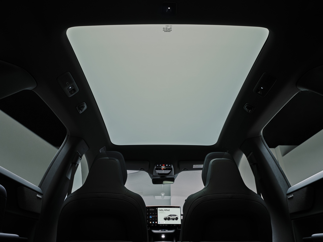 - Acoperiș panoramic electrochromic, cu transparență reglabilă (opțiune, dar standard începând cu echiparea Ultra a modelelor AWD)