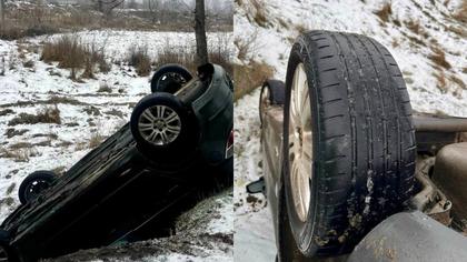 „Nu vă porniți la drum, dacă mașinile nu sunt echipate corespunzător”. Poliția, cu avertizare pentru șoferi: O mașină a derapat de pe traseu și s-a răsturnat