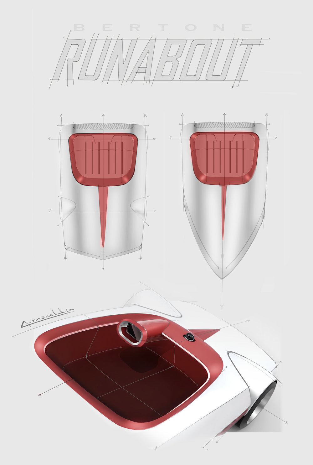 Andrea Mocellin, responsabil de design: „Am vrut să traducem esența Runabout-ului din 1969 într-o mașină relevantă azi. Nu am copiat forme, ci valori: libertate, ușurință, puritate. Proporțiile joase și linia wedge creează imediat senzația de mișcare. Interiorul e ca un obiect sculptat – simplitatea formelor și luxul vin din materiale și execuție.”