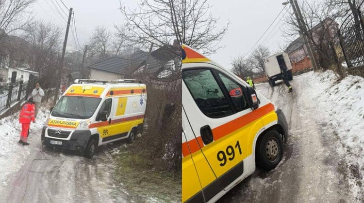 FOTO Mai multe ambulanțe aflate în misiune au fost blocate din cauza ghețușului