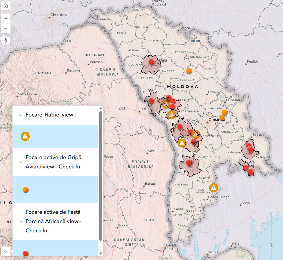 Au fost depistate două focare de gripă aviară în fauna sălbatică la Vadul lui Vodă, municipiul Chișinău și Slobozia-Dușca, Criuleni. Două focare de rabie la porc – Șendreni, Nisporeni; la câine – Chiriet-Lunga, Ceadîr-Lunga și două focare de pestă porcină africană la mistreți Talmaza, Ștefan Vodă și Căbăiești, Călărași.