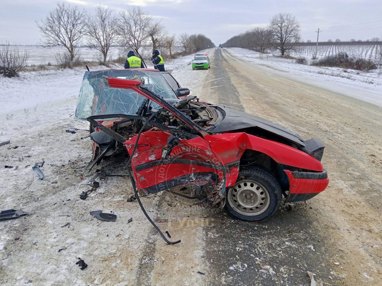 Potrivit autorităților din regiune, șoferul unui automobil de model Mazda nu a ținut cont de condițiile meteorologice, a derapat, a pătruns pe sensul opus și s-a tamponat cu un Volkswagen.