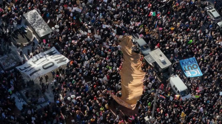 Protestatarii s-au adunat în centrul orașului, chiar și la temperaturi sub zero grade, pentru a contesta creșterea numărului de agenți și metodele folosite de Serviciul de Imigrări și Vămi al SUA. Printre participanți s-au numărat familii cu copii mici, cupluri în vârstă și tineri activiști.