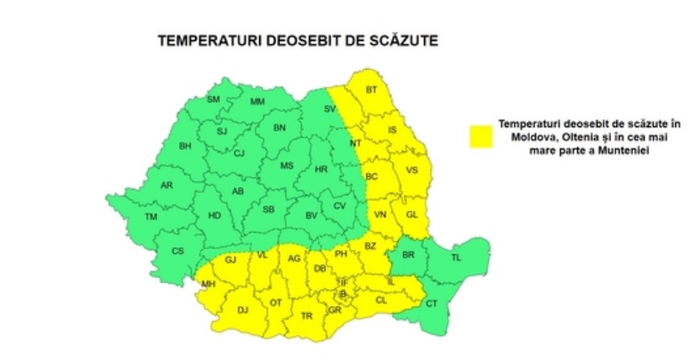 Potrivit meteorologilor ANM, vremea va fi mult mai rece decât normalul perioadei, cu temperaturi scăzute, vânt puternic, polei, ghețuș și viscol la munte. În anumite intervale, intensitatea fenomenelor va crește semnificativ.