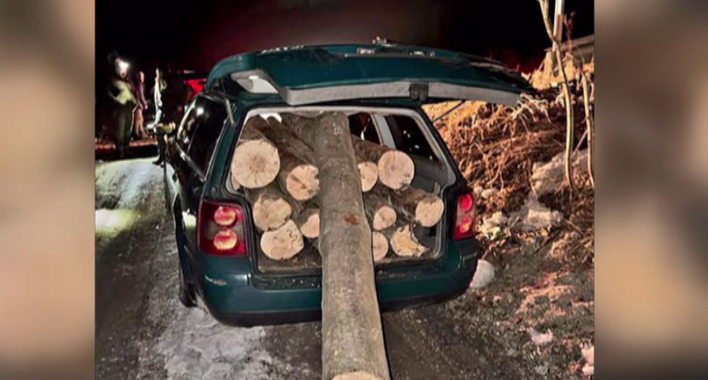 Imaginile zilei vin de la un bărbat care a fost prins cu… 14 bușteni furați, pe care, în mod inexplicabil, reușise să-i înghesuie într-un autoturism. Totul s-a întâmplat într-o pădure din județul Brașov, acolo unde a și fost prins de polițiști. Bărbatul este cercetat pentru furt.