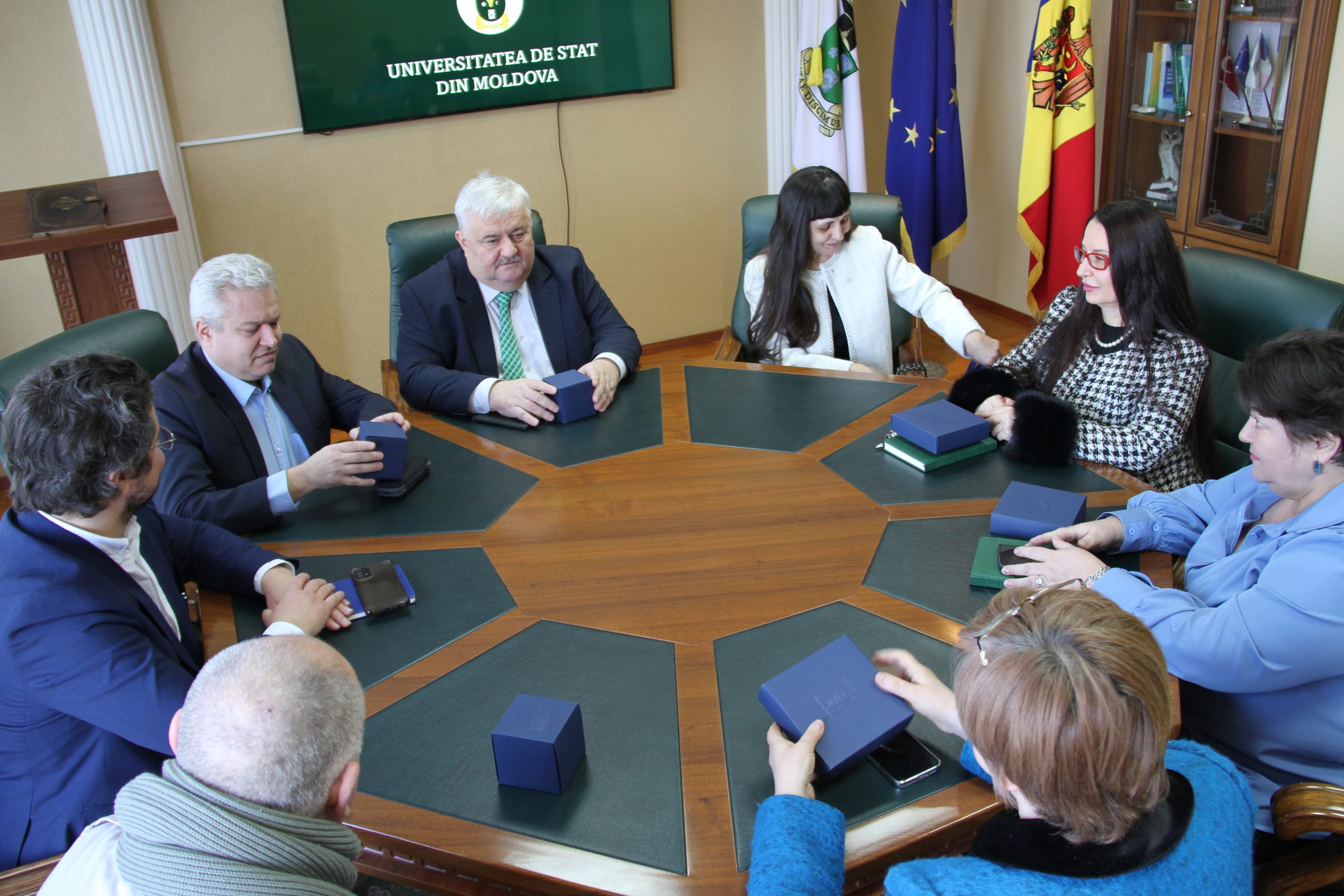 Cu ocazia vizitei la Chișinău, delegația Universității de Vest din Timișoara a avut întrevederi cu conducerea USM, discuțiile fiind axate pe implementarea cooperării instituționale și valorificarea oportunităților oferite de rețeaua UNITA pentru dezvoltarea Universității de Stat din Moldova.