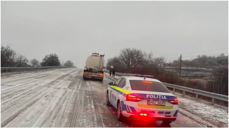 Potrivit informațiilor furnizate de Poliție, în raionul Strășeni, pe traseul M-5, în localitatea Greblești, circulația transportului de mare tonaj este temporar sistată. De asemenea, pe traseul Corpaci-Hancăuți, în raionul Edineț, se circulă cu dificultate, carosabilul fiind extrem de alunecos, iar șoferii sunt îndemnați, pe cât posibil, să evite deplasarea.