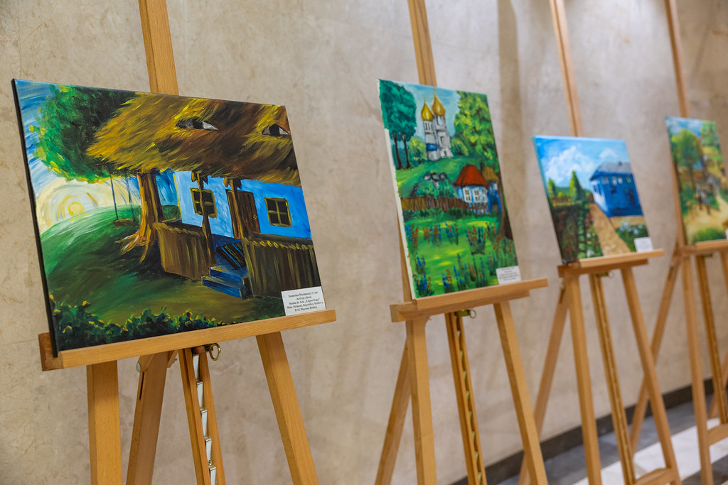 Lucrările au fost realizate de un grup de elevi cu vârste între 11 și 17 ani de la Școala de Arte „Eugen Doga” din municipiul Strășeni, care au participat la un atelier de pictură intitulat „Casa Albastră”.