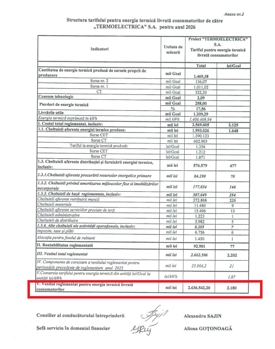 Termoelectrica S.A. a depus astăzi, 9 februarie, o solicitare oficială de ajustare a prețului pentru energia electrică produsă, precum și a tarifului pentru energia termică livrată consumatorilor în anul 2026.